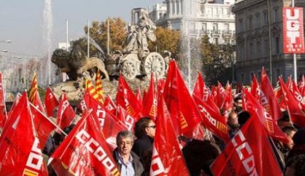 Der er lagt op til en omfattende protest mod regeringens økonomiske politik, når de to store fagforbund, Comisiones Obreras og UGT i eftermiddag går på gaderne i Madrid.
