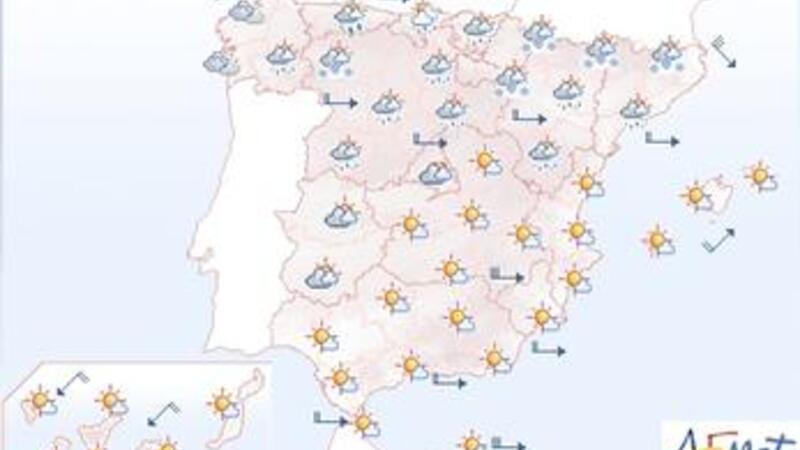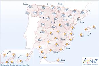 Mandag og Tirsdag nogen sol og mest tørt, men koldt, mellem 7 og 15 grader.