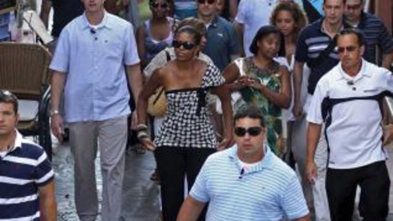 USA's første dame, Michelle Obama, og præsidentparrets 9-årige datter Sasha, var i går på sightseeing i Granada.