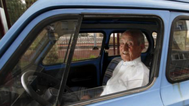 Hvad skulle man dog gøre uden bil, siger den 100-årige Joaquín Roca fra den lille landkommune Liérganes I Cantabrien. Han har netop fået fornyet sit kørekort - han bruger nemlig bilen rigtig meget.