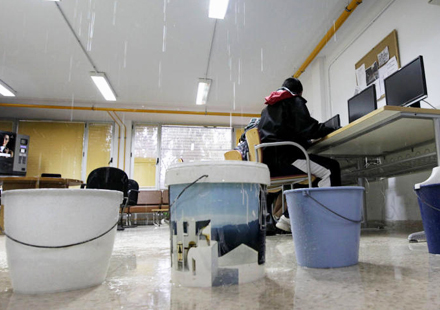 Nogle steder, som på denne skole, regnede det også indenfor