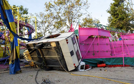 Og det var ikke bare tornadoen, der tog festen ud af feriaen. I alt faldt der nemlig 207 mm. regn, og 22 familier, der arbejder på festpladsen, måtte tilbringe natten på Hotel Borgia, da deres campingvogne blev ødelagt eller oversvømmet.