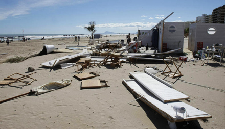 Gandias borgmester, Arturo Torró, bekræfter, at tornadoen kom ind over land med 120 km/t. I løbet af bare et halvt minut smadrede den et stort forlystelsesområde og 30 biler, der holdt parkeret på byens feria-plads.