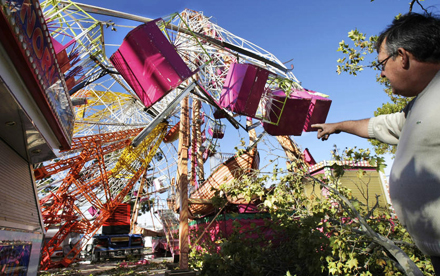Tornadoen ødelagde fuldstændig et pariserhjul, der var sat op i forbindelse med byfesten i Gandia, og 15 personer, der befandt sig på pladsen, blev kvæstet.