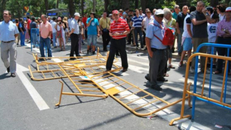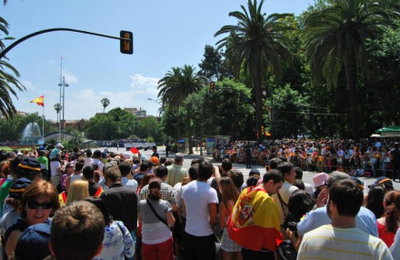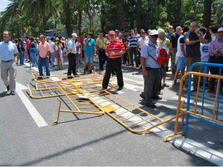 Der var arrangeret særtransporter til Málaga, så alle interesserede kunne komme ind til "den store oplevelse". Og hele vejen langs Paseo del Parque var der opstillet gule afspærringer, så publikum ikke kunne træde ud på Paseo'en.