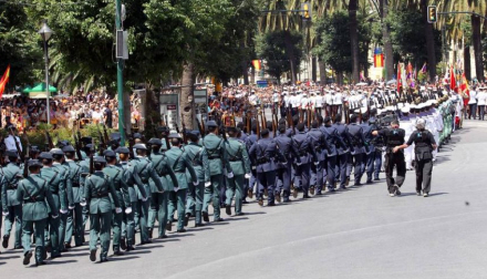 I stedet for en decideret militærparade, fik tilskuerne en kort kolonne med soldater fra de fire værn: land, sø, luft og Guardia Civil samt en enkelt krigstank...