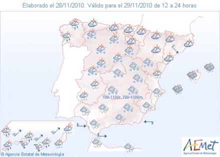 Torsdag og fredag kommer der muligvis en del sol og kun enkelte byger. Det bliver til gengæld koldt, og snegrænsen falder til 1.100 meter. Det betyder at der kan falde sne på de højeste bjergtoppe i Málaga Provinsen.