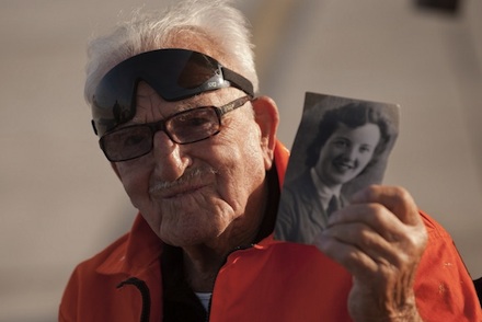 Bedstefar med slag i lod sig binde til et fly og fløj tværs over Gibraltar lørdag. Den 94-årige stod på flyet i 25 minutter og lavede det såkaldte ‘loop-the-loop’.