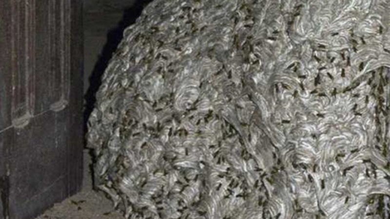 Det var naboer til den tomme ejendom, der slog alarm, da de fik øje på boet med de mange millioner hvepse.