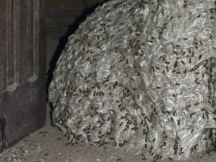 Hvepsereden er blevet bygget over en årrække og var placeret lige ved indgangen til huset.