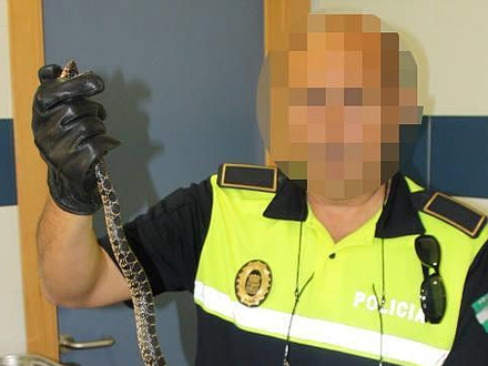 Agenter fra politiet dyrebeskyttelsesafdeling, Grupona, har indfanget en hestesko-slange (Culebra Herradura), der målte over en meter.