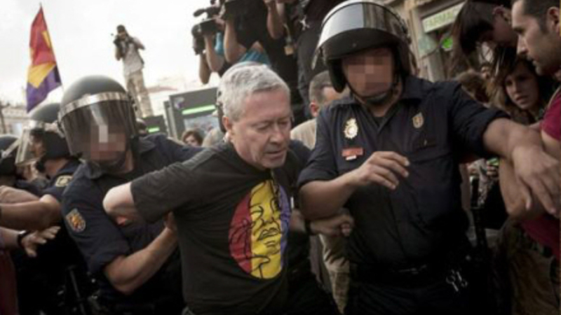 Men den tidligere konservative politiker Jorge Vestrynge – nu medlem af det nye venstreorienterede borgerparti Podemos - blev anholdt, da han forsøgte at komme igennem en politikæde, fordi ”han ville hjem". Nogle blev anholdt for civil ulydighed og for at have råbt republikanske slagord.
