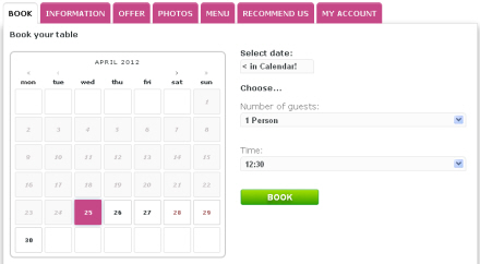 Bookingsystemet på restaurantens fanside på Facebook