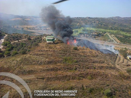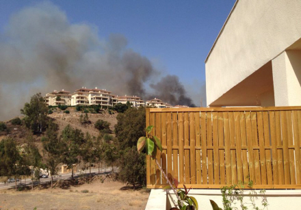 I området kaldet El Rincón del Hinojal, der ligger foruroligende tæt på tusindvis af lejligheder i La Cala Hills, opstod der kort efter klokken 11 brand. Flere beboere, i de blokke i La Cala Hills, der ligger nærmest branden, blev evakueret.