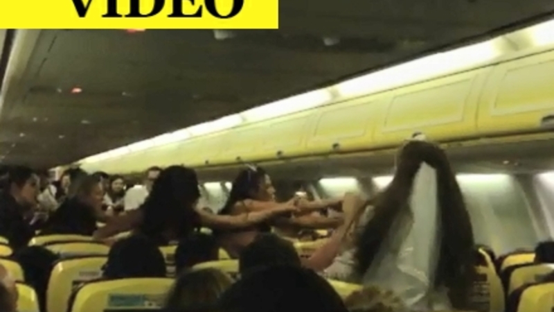 En gruppe unge kvinder var på vej til Barcelona for at ”tage afsked” med 30-årige Kelly Lloyd, som skulle giftes. Men de endte med at ryge i totterne på hinanden, 40 minutter inden flyet overhovedet landede i den catalanske hovedstad.