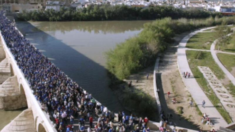 Klædt i blå trøjer gik de mange mennesker langsomt frem og tilbage over broen for at markere deres støtte til byens kandidatur til Kulturby 2016. Blandt deltagerne var flere generationer og hele familier med børn, børnebørn og oldebørn. Córdobas borgmester, Andrés Ocaña (IU) , siger, at han er overvældet over den eneorme deltagelse, og at der på et tidspunkt var så mange mennesker, at der ikke var plads på den gamle bro.