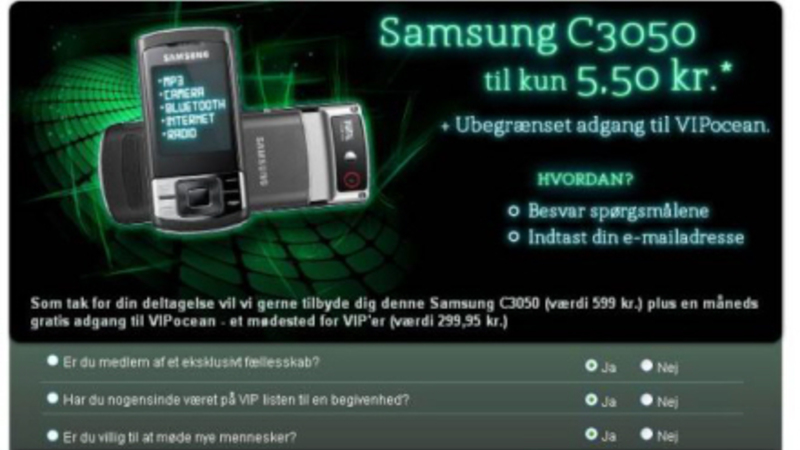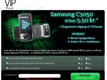 VIP Ocean er en gammel kending på Costa del Sol, hvor firmaet har haft helsidesannoncer i den danske lokalpresse. Med et tilbud om en ny mobiltelefon for en femmer, lokker firmaet folk til at aflevere deres kreditkortoplysninger. Men i virkeligheden accepterer brugerne samtidig at melde sig ind i en VIP-klub. Det koster 300 kroner om måneden, og man accepterer, at VIP Ocean må trække det beløb direkte fra ens bankkonto hver måned fremover. Vilkåret er bare gemt så langt bort på hjemmesiden, at de færreste opdager det før det er for sent.