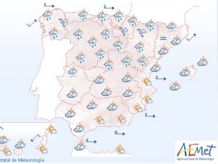 De nordlige egne får overskyet vejr, og der kan komme byger – også på Balearerne. I den sydlige del af landet skyet til letskyet vejr.