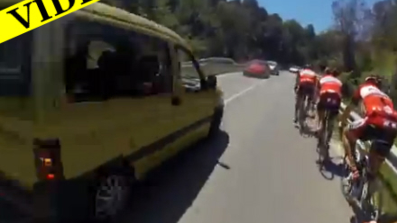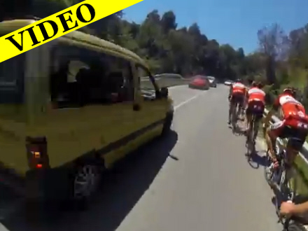 Et lokalt cykelholds træning blev lige spændende nok, da en gul Citroën Berlingo kom kørende bagfra og forsøgte at overhale dem.