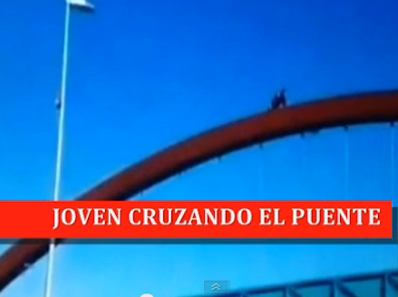 Buen, der er sig i en afstand på mere end 2,5 meter over kørebanen på broen, er mindre end en meter bred. Drengen måtte kravle op de første meter, indtil han havde fået fodfæste. Herefter rejste han sig og fortsatte med at gå op mod toppen.