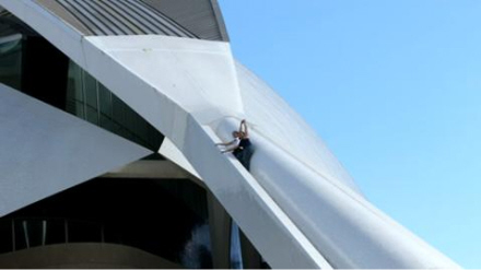 Unge turister i Valencia er hoppet på en ny dille, som består i at kravle op på byens opera- og kulturhus, Palau de les Arts. Og der er ikke ligefrem tale om nogen ufarlig sport.