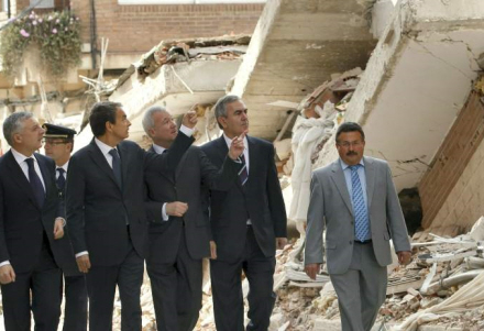 Fredag: Ministerpræsident José Luis Rodrigúez Zapatero inspicerer ruinerne inden mindehøtideligheden