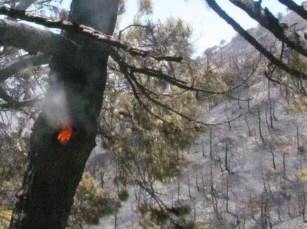 Stadig ild inde i stammen, hvor vandet ikke kan nå