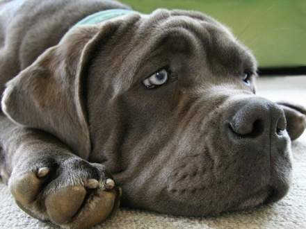 Mastiff-tæven var i en meget dårlig tilstand. Hun var afmagret og havde et stort, åbent sår på det højre øre, der var inficeret og hævet til ti gange normal størrelse.