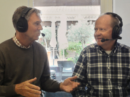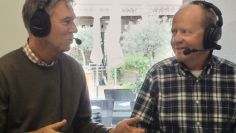 De første 10 minutter handler det om det generelle, og i resten af tiden spørger Morten Møller (til højre) ind til mange detaljer om både holdene, trænerne, banen og de enkelte spillere.