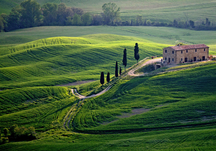 Siena i Italien med vinmarker og middelalderlandsbyer