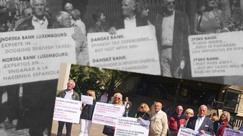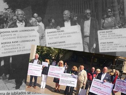 Udenlandske pensionister demonstrerede i går foran skattekontoret i Málaga i protest mod påstået skattesvig fra flere danske banker som Jyske Bank, Nordea og Danske Bank.