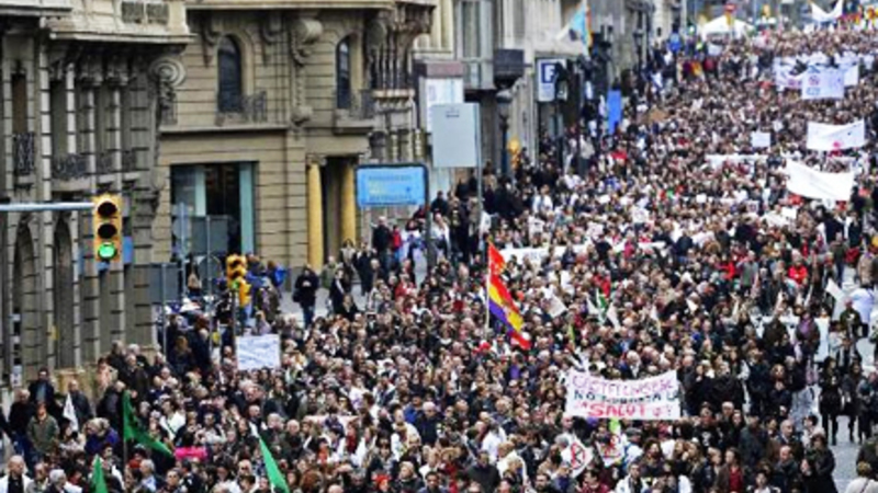 Der var demonstrationer i 80 spanske storbyer mod massearbejdsløshed og nedskæringer i sundhedsvæsenet, velfærd og uddannelse.