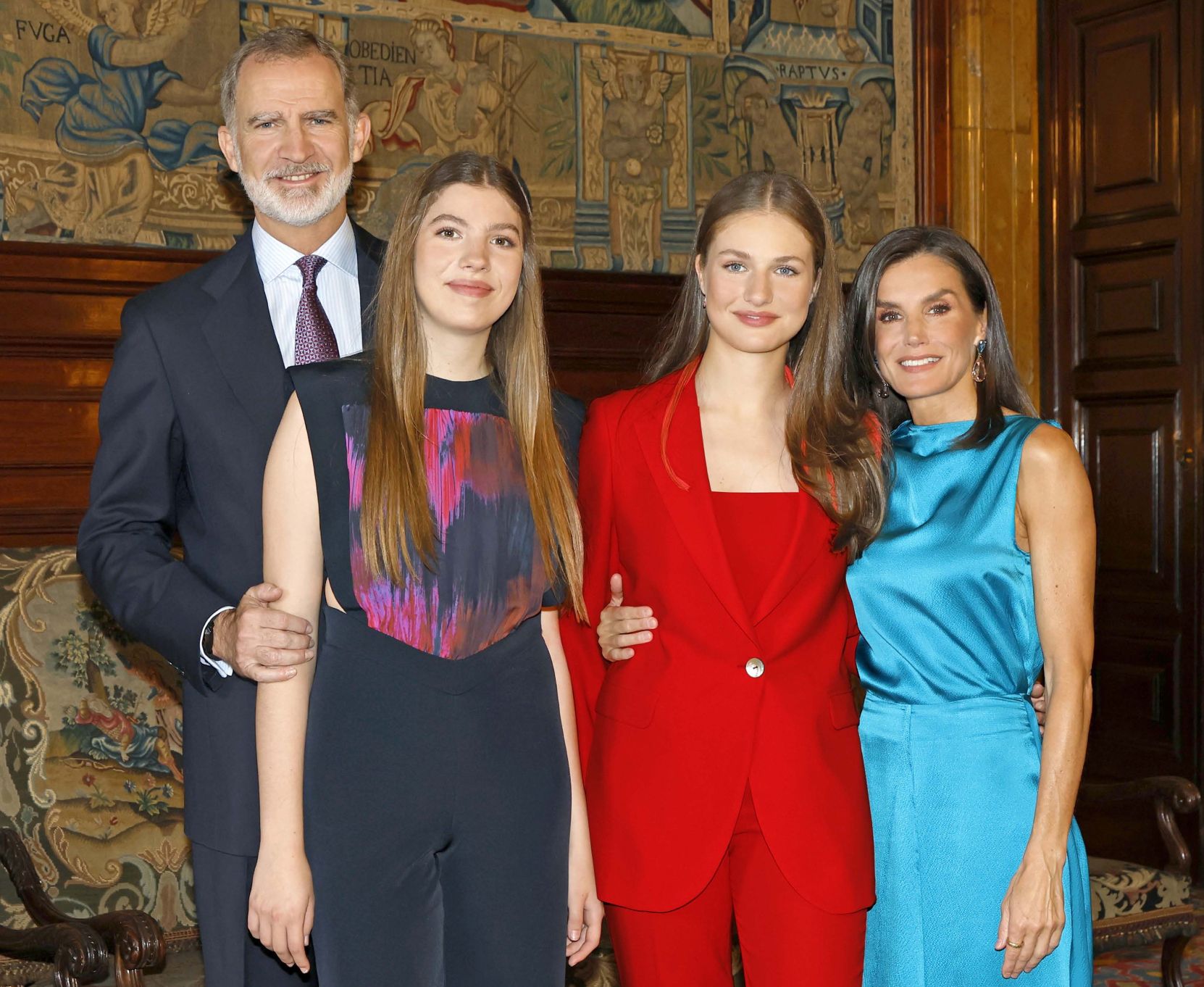 Kongen, dronningen og deres døtre i et foto fra fejringen af 10-årsdagen for Felipe VI's regeringstid