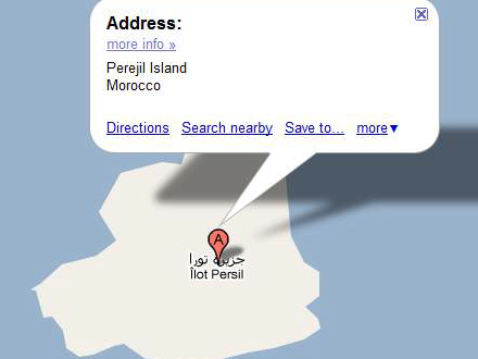 Spanien er blevet sur over, at en lille-bitte klippeø cirka 200 meter nord for Marokkos nordligste punkt, er markeret som en del af Marokko på Googlemaps. Den lille ubeboede klippeø har været stridspunkt før og betyder åbenbart en hel del for den spanske regering, der har skrevet et brev til Google, hvori man kræver, at få øen tilbage. Den lille ø er bare en af flere små øer lige ud for den marokkanske kyst, der alle er spanske.
