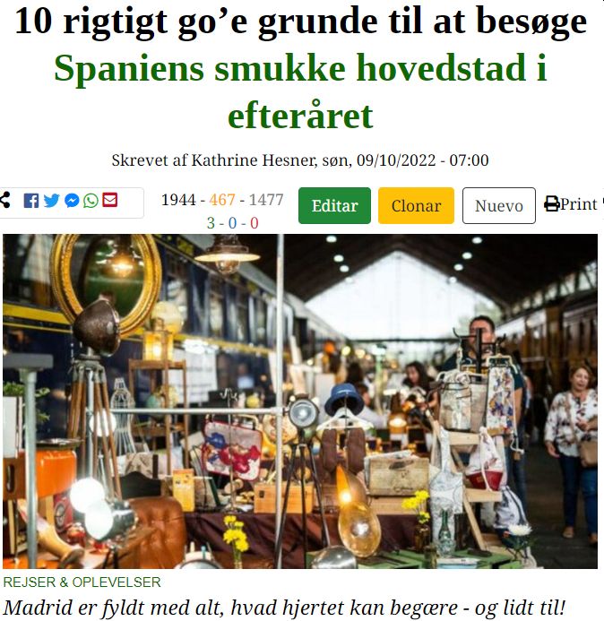 Artiklen er godt ét år gammel, men stadig aktuel. Jeg spurgte vores gode Amigos, om de kunne bruge den og de 17 andre artikler, der allerede ligger på Spanien i Dag om Madrid: "Mange tak, dem kan vi bestemt bruge. Vi tager af sted i begyndelsen af november, og det bliver spændende."