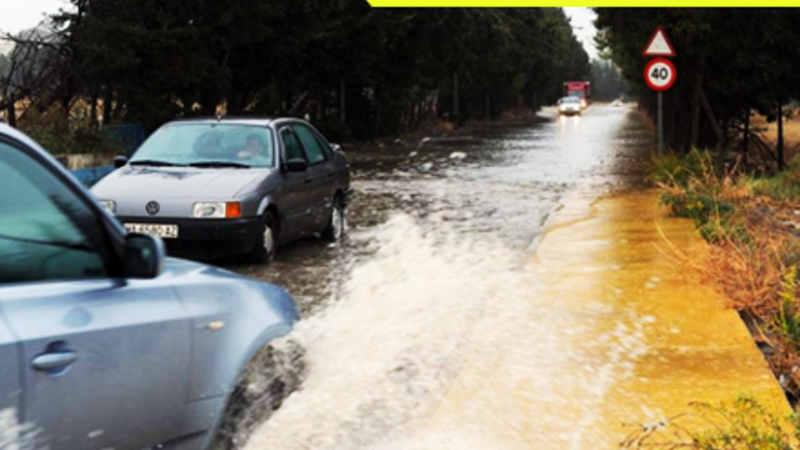 Vær opmærksom på fare for glat og fedtet føre. En farlig cocktail af olie, fedt og regn kan forvandle landevejene sig til en dødsensfarlig skøjtebane. Pas på hårde opbremsninger og bratte ryk i rattet.