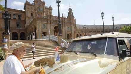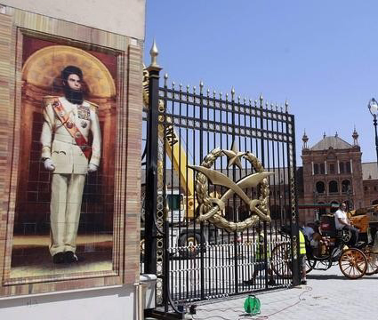 Plaza España i Sevilla er for øjeblikket pakket ind i billeder af en stor-skægget mand iført djellaba'er. Byen er indtaget.