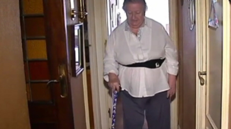 Apparatet er fastgjort til et bælte, som pensionisten har på sig.