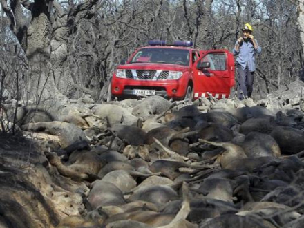 Ud over kvæstede og døde mennesker er et stort antal dyr omkommet i flammerne. På flere gårde i området er husdyr brændt inde.