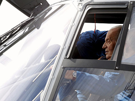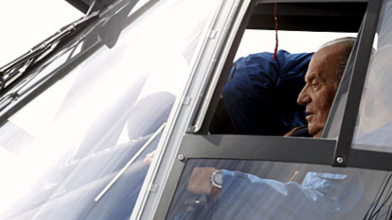 Spaniens 73-årige Kong Juan Carlos er ikke bleg for at sætte sig ved styrepinden i en af hærens nye kamphelikoptere. Som en anden garvet jagerpilot overtog kongen kommandoen og fløj rundt i 30 minutter, indtil maskinen igen stod sikkert på jorden.