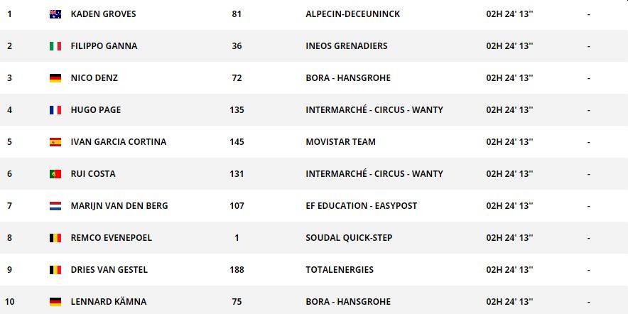 Australieren Kaden Groves blev også dekoreret med pointtrøjen