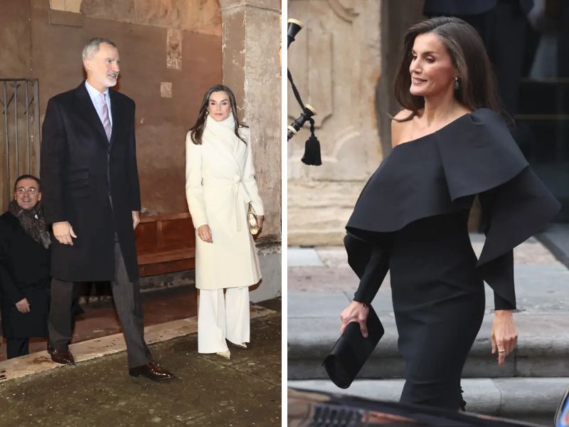 På en af årets sidste officielle rejser skuffede Letizia ikke og gav en lektion i stil fra det øjeblik, hun trådte ind på italiensk jord med et helt hvidt look, inklusive frakke og tørklæde.
