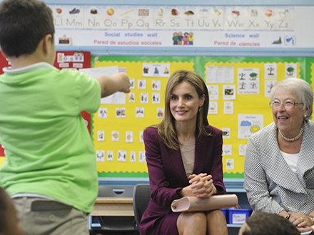 Mandag besøgte Letizia en skole på det nordlige Manhattan. Det er første gang, at den 42-årige dronning har været på officielt besøg i New York som hustru til den nye regerende monark Kong Felipe VI, der indtog tronen for tre måneder siden.