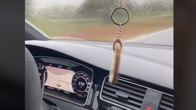 Kun få sekunder senere passerede han en strækning, hvor den tilladte hastighed begrænses til 80 km/t, uden at der sker nogen form for fartnedsættelse. Det hele foregik oven i købet under dårlige vejrforhold på grund af regnvejr. Også denne køretur blev optaget af personen på passagersædet og efterfølgende delt på et socialt netværk.