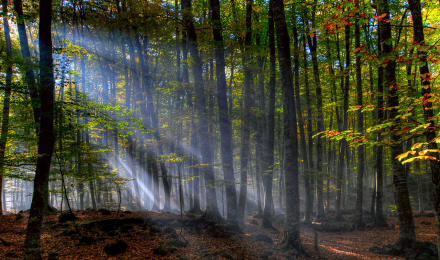 Solens stråler filtreres i bøgetræerne