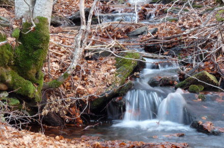 Små rislende vandløb i smukt efterårstøj