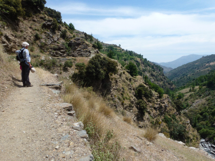 Fra den smukke bro går stien opad imod Capileira, og her må du forberede sig på flere højdemeter. Det hele bliver til gengæld belønnet med en meget smuk udsigt ud over dalen og Sierra de Contraviesa på den anden side.