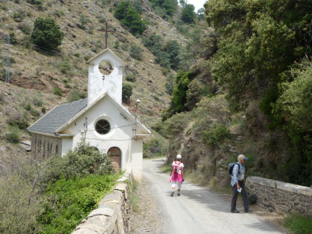 Snart begynder stien at gå nedad, og vi får La Cebadilla i sigte. Det første, man ser, er den forladte kirke og de få bygninger, der husede de omkring 50 ansatte på elværket, da det blev bygget i 1950'erne. Elværket ligger der, hvor de to floder Naute og Toril løber sammen til floden Poqueira, og derfor har den meget stor kraft præcis her.