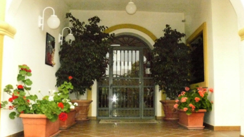 Residencia Villa-Alhamar er en velholdt to-etagers ejendom med små lejligheder. Den hvid-gule bygning har et flot haveanlæg med gangstier, en stor overdækket pergola-terrasse og skyggefulde palmer.