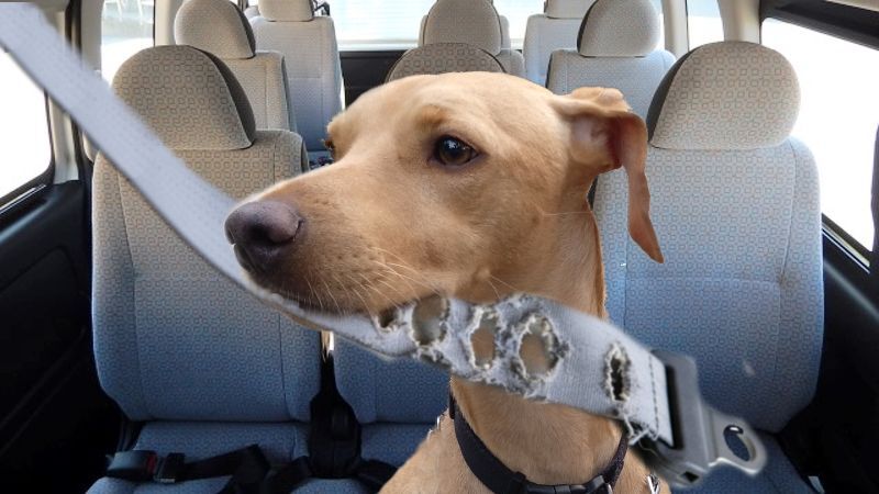 Jo, på et tidspunkt må Don Pablo have kedet sig bag i bilen og bidt sikkerhedsselen i stykker - sikkert under en længere køretur. Hvornår det skete, ved jeg ikke, men jeg opdagede det få uger inden, jeg i oktober skulle til syn; ITV.